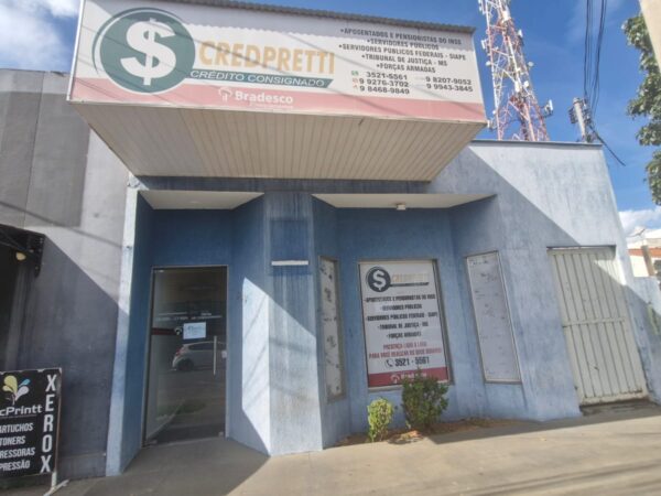 Salão mobiliado, 02 provadores, copa com armário, banheiro social, corredor, teto de laje, piso de cerâmica, murado, no asfalto.