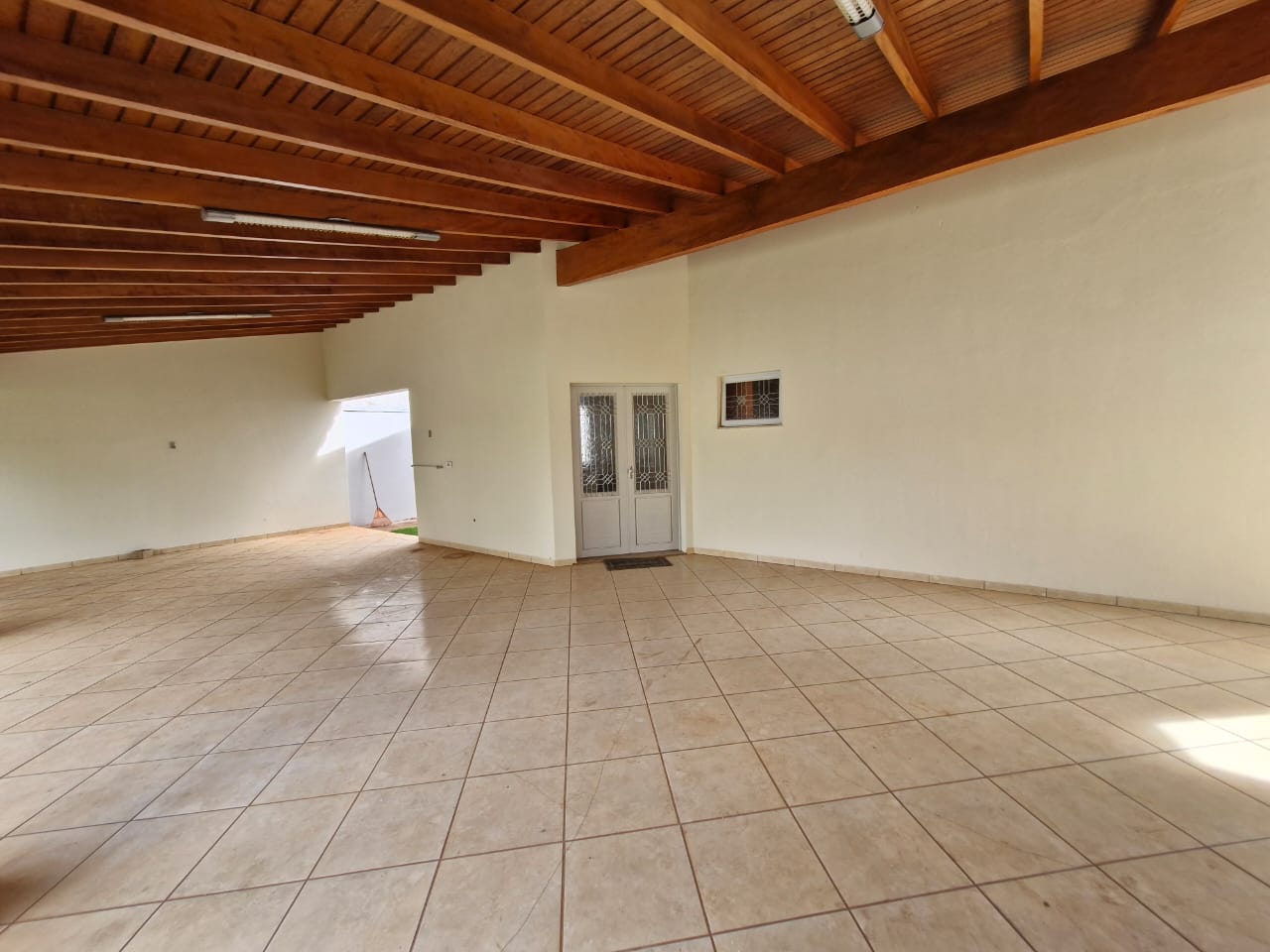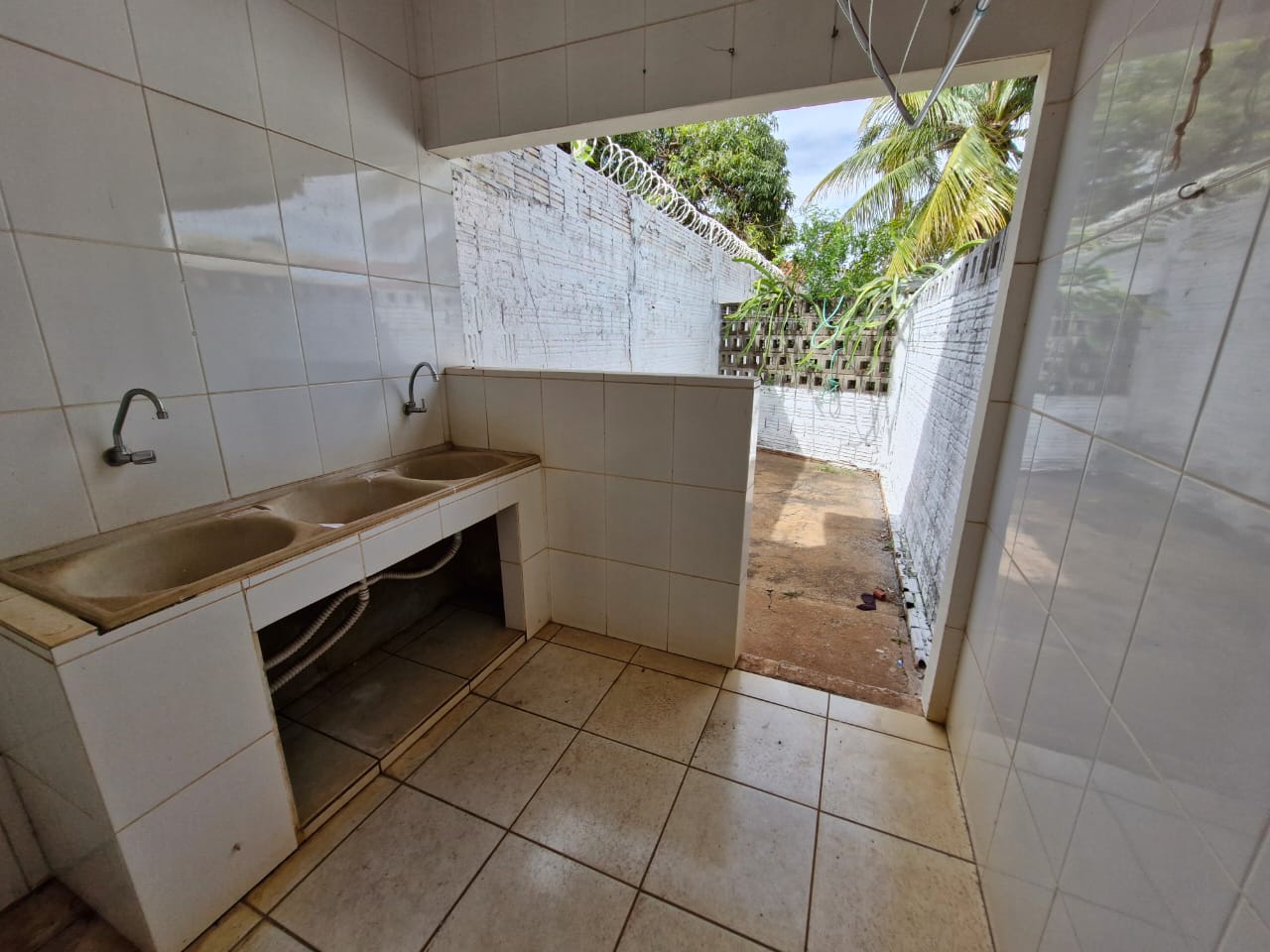 01 suíte, 02 quartos, sala, cozinha, banheiro social, lavanderia, área nos fundos com churrasqueira, quintal, banheiro externo, varanda na frente, garagem, portão eletrônico, interfone, cerca elétrica, teto de laje, piso de cerâmica, murado, no asfalto.