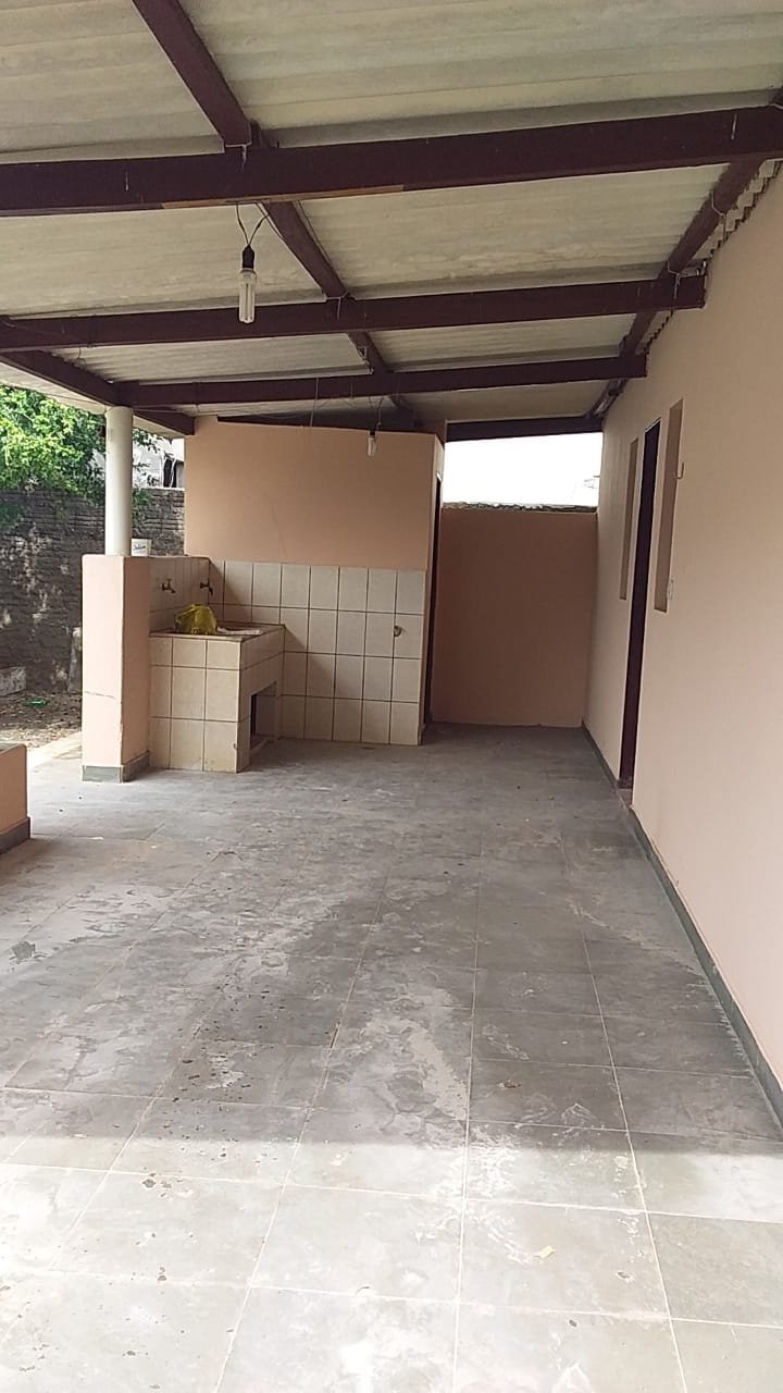 03 quartos, 02 salas, cozinha, copa, banheiro social, varanda na frente, garagem com área de serviço, banheiro externo, quintal, salão com banheiro social.