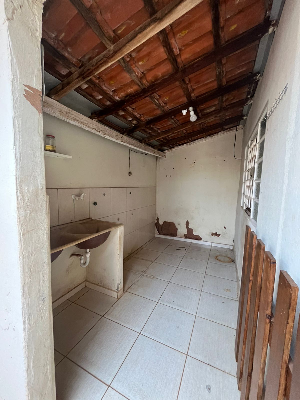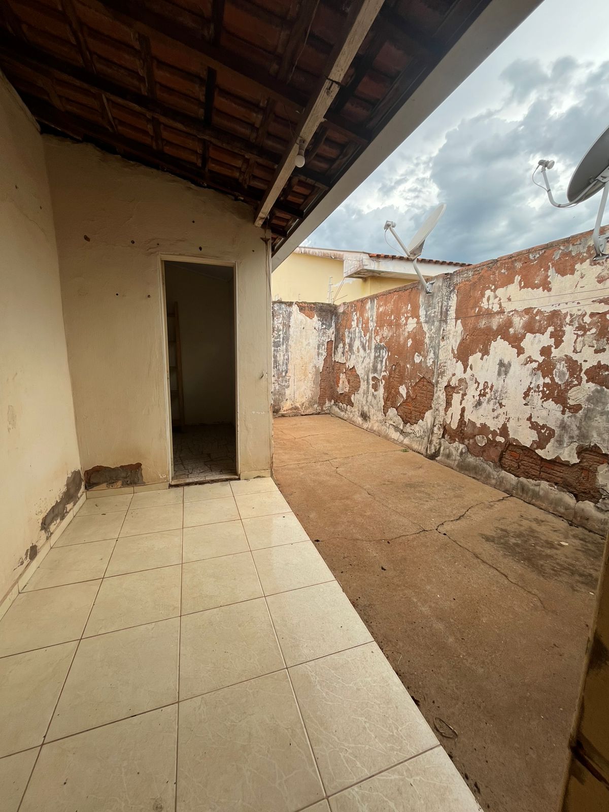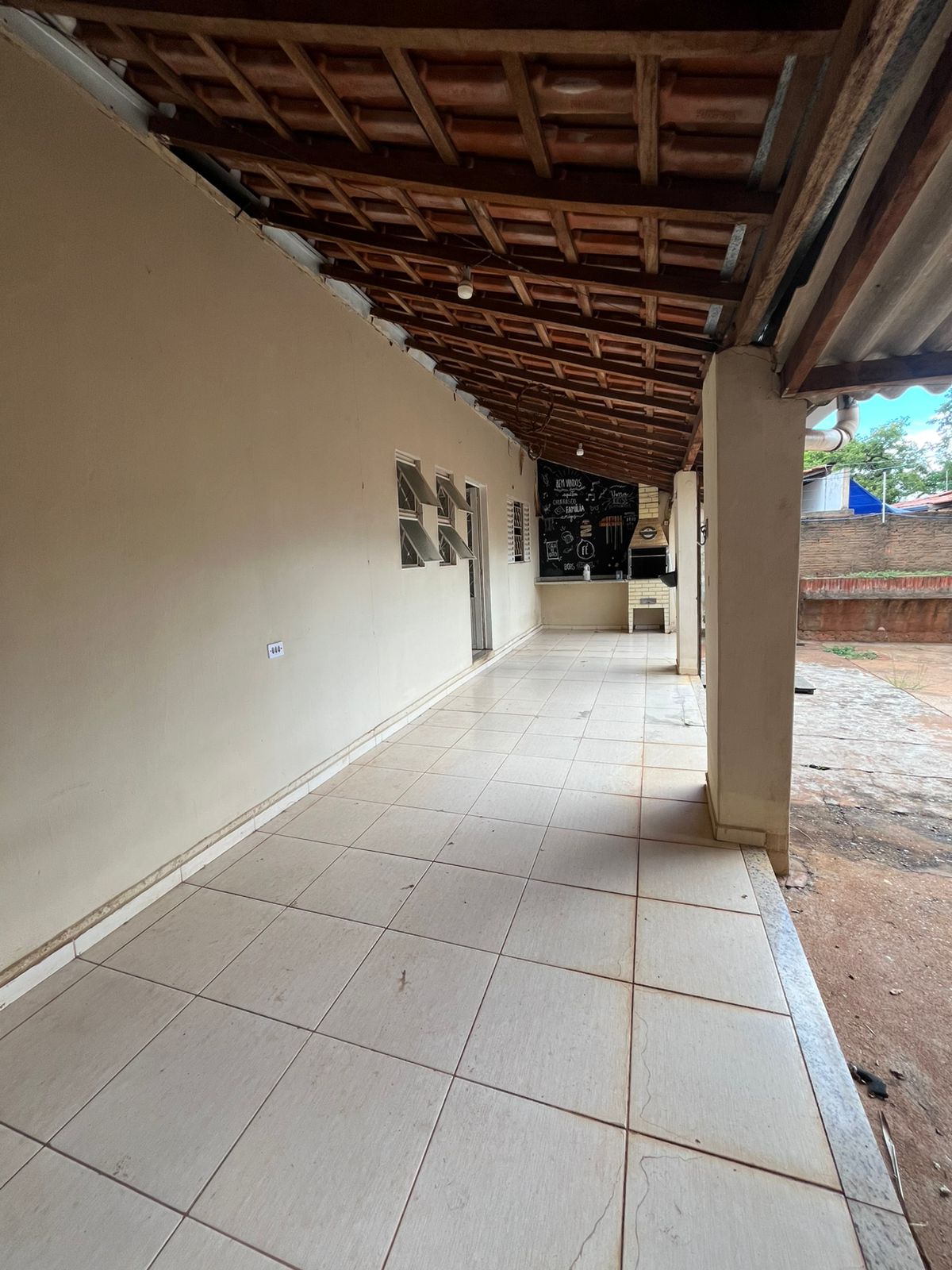 03 quartos, 02 salas, cozinha, banheiro social, lavanderia, quarto de despejo, quarto externo, quintal, varanda na frente com churrasqueira, interfone, cerca elétrica, portão eletrônico, forrada, piso de cerâmica, murada, no asfalto.