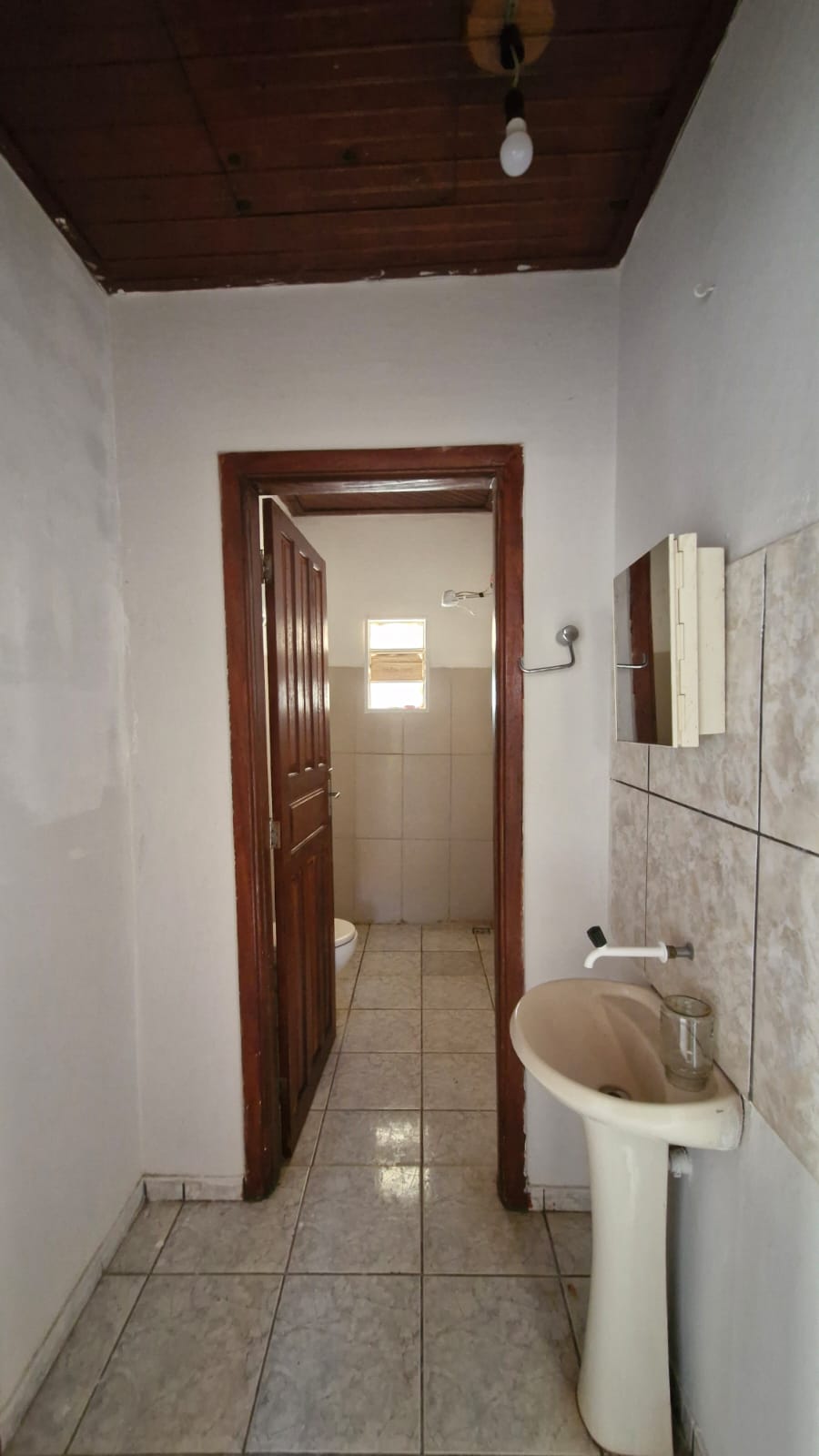 02 quartos, sala, cozinha, banheiro social, lavanderia, varanda na frente, garagem, quintal, forro madeira, piso de cerâmica, murada, no asfalto.