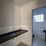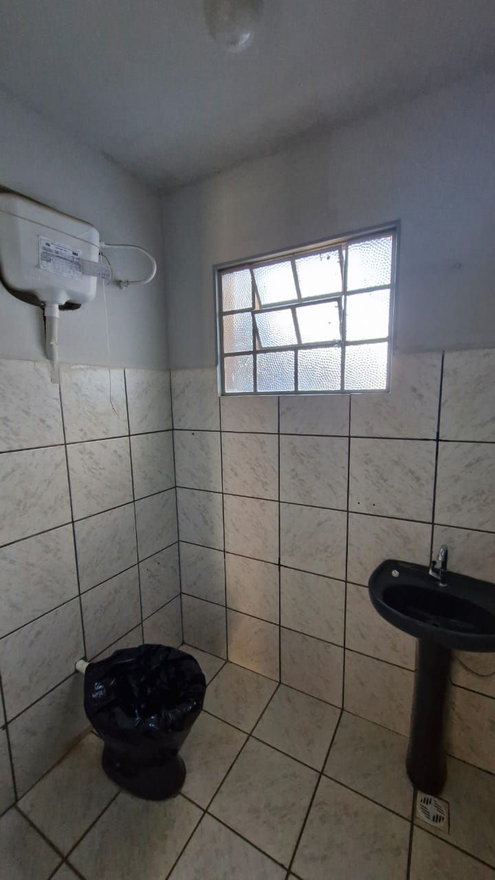 01 salão com banheiro social, teto de laje, piso de cerâmica, murado, no asfalto.