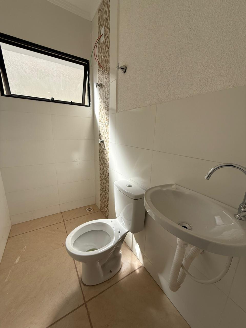 Casa em Condomínio: 01 suíte, 02 quartos, sala, cozinha, banheiro social, lavanderia, quintal, teto de gesso, piso de cerâmica, garagem sem cobertura, murado no asfalto.