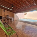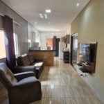 Casa: 02 quartos, sala e cozinha americana, banheiro social, lavanderia, áreagourmet, lavabo, piscina, sauna, placa solar, cerca elétrica, portão eletrônico, interfone, concertina, garagem para 02 carros coberto, teto de drywall, piso de cerâmica, murado, no asfalto.