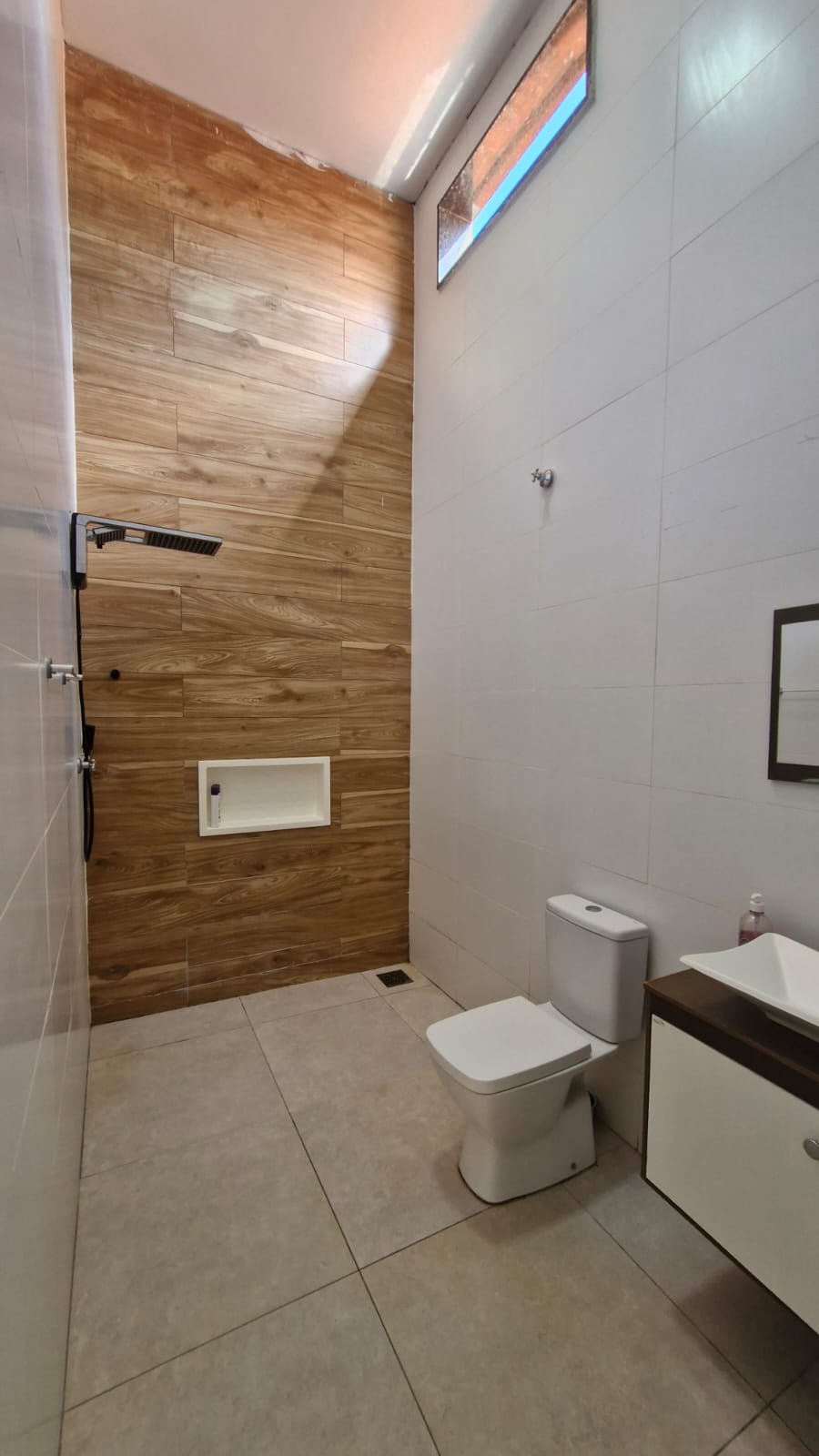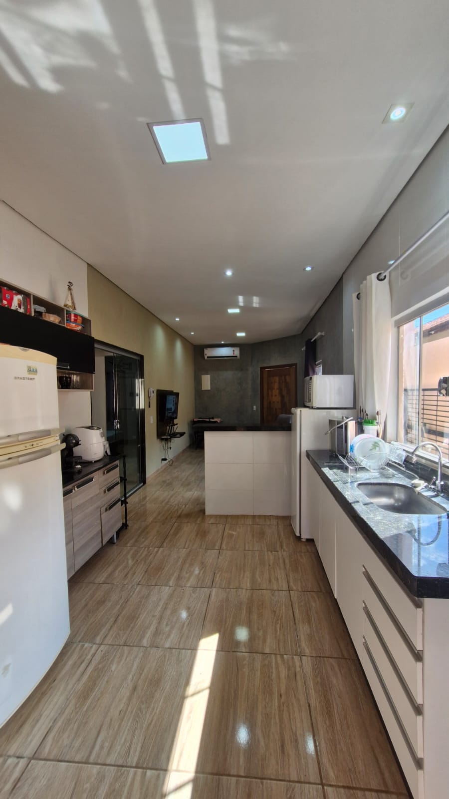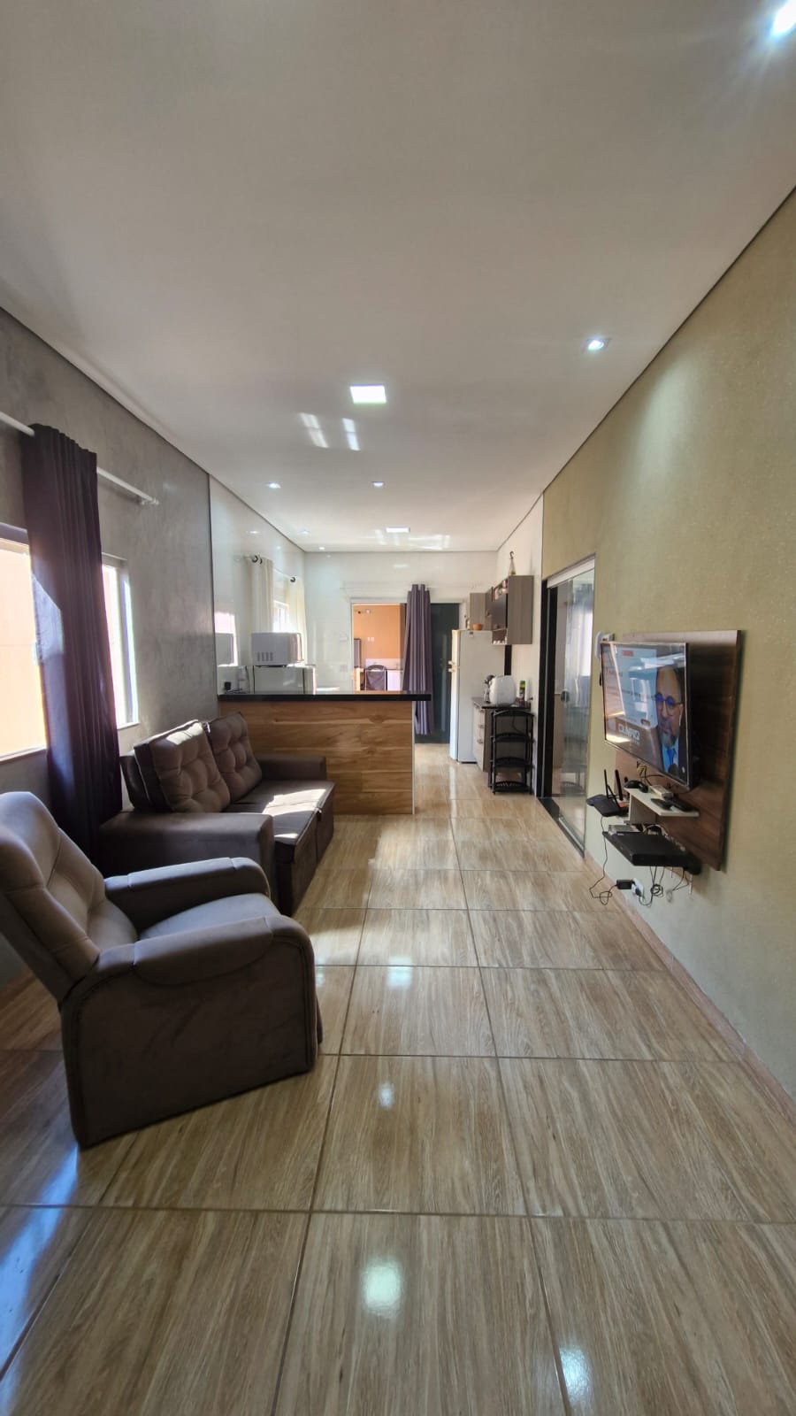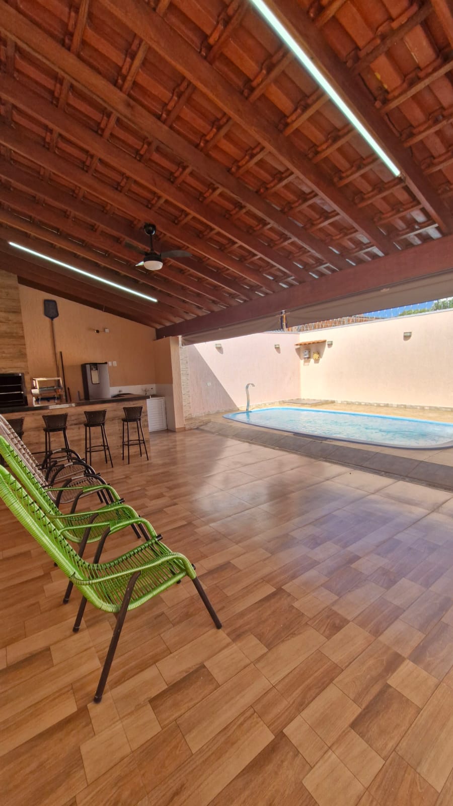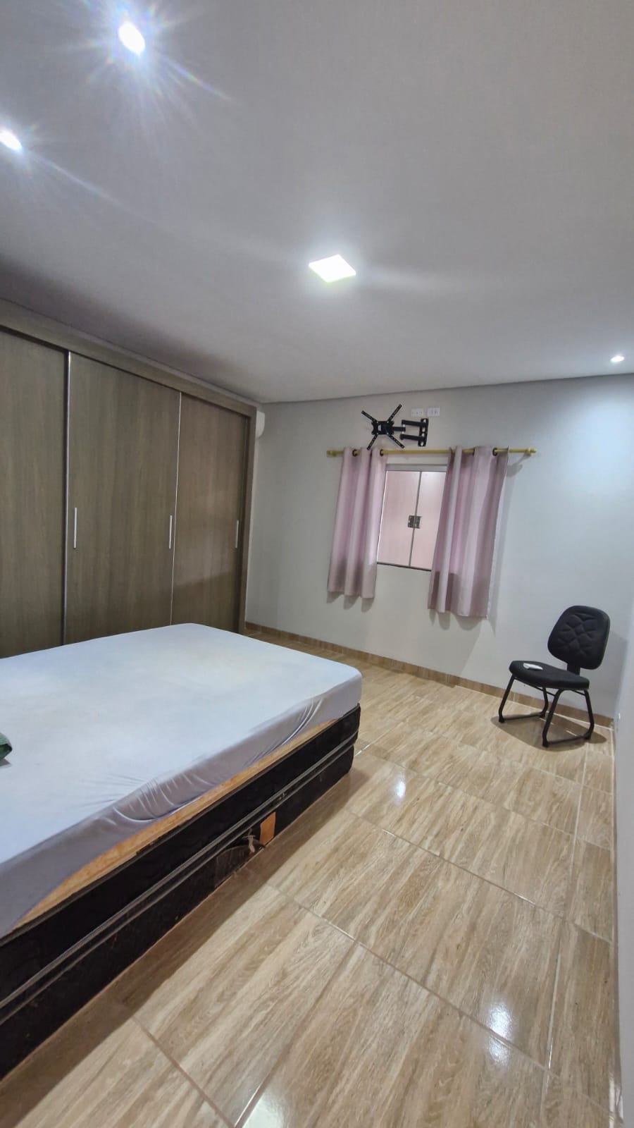 Casa: 02 quartos, sala e cozinha americana, banheiro social, lavanderia, áreagourmet, lavabo, piscina, sauna, placa solar, cerca elétrica, portão eletrônico, interfone, concertina, garagem para 02 carros coberto, teto de drywall, piso de cerâmica, murado, no asfalto.