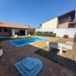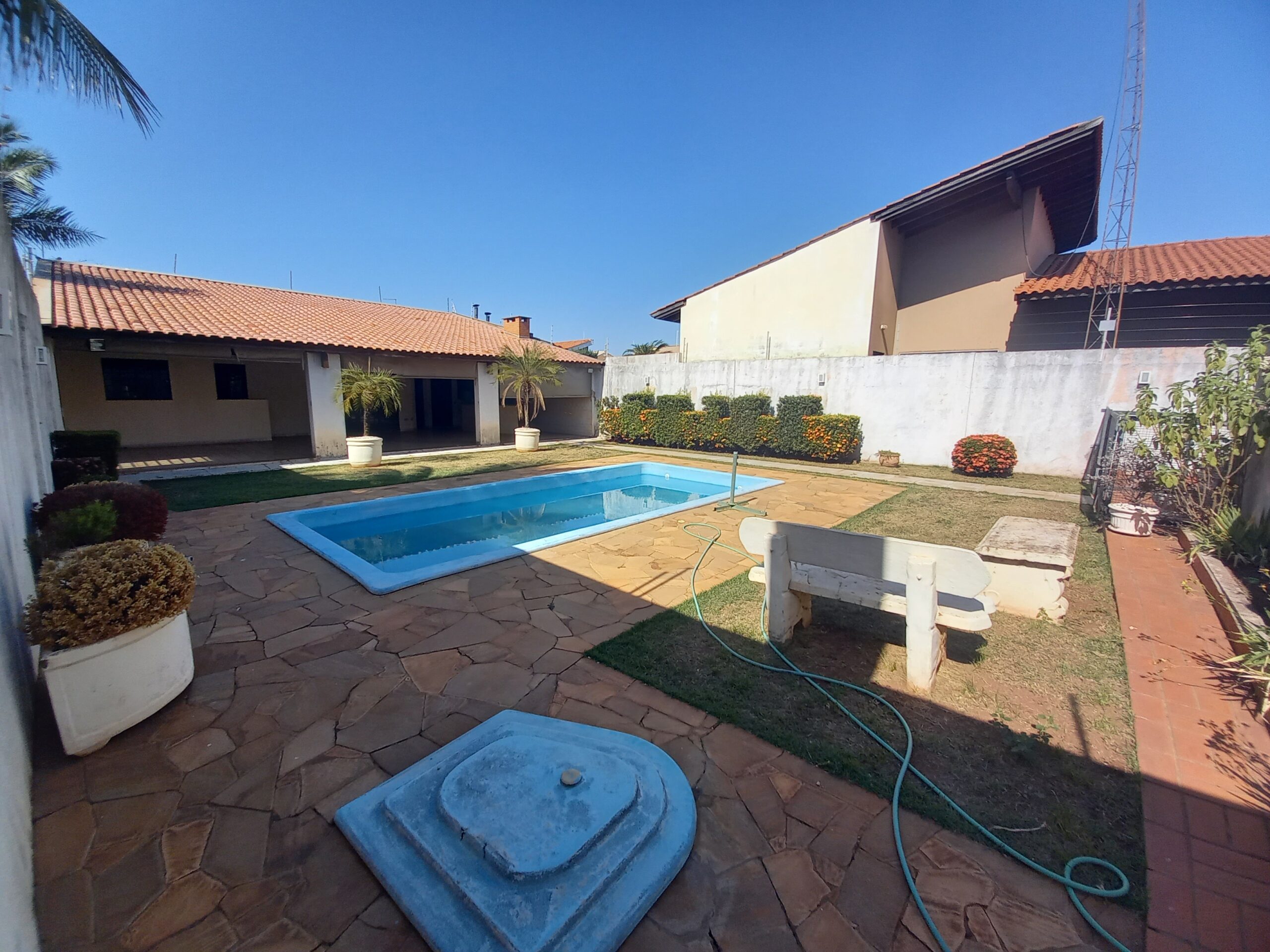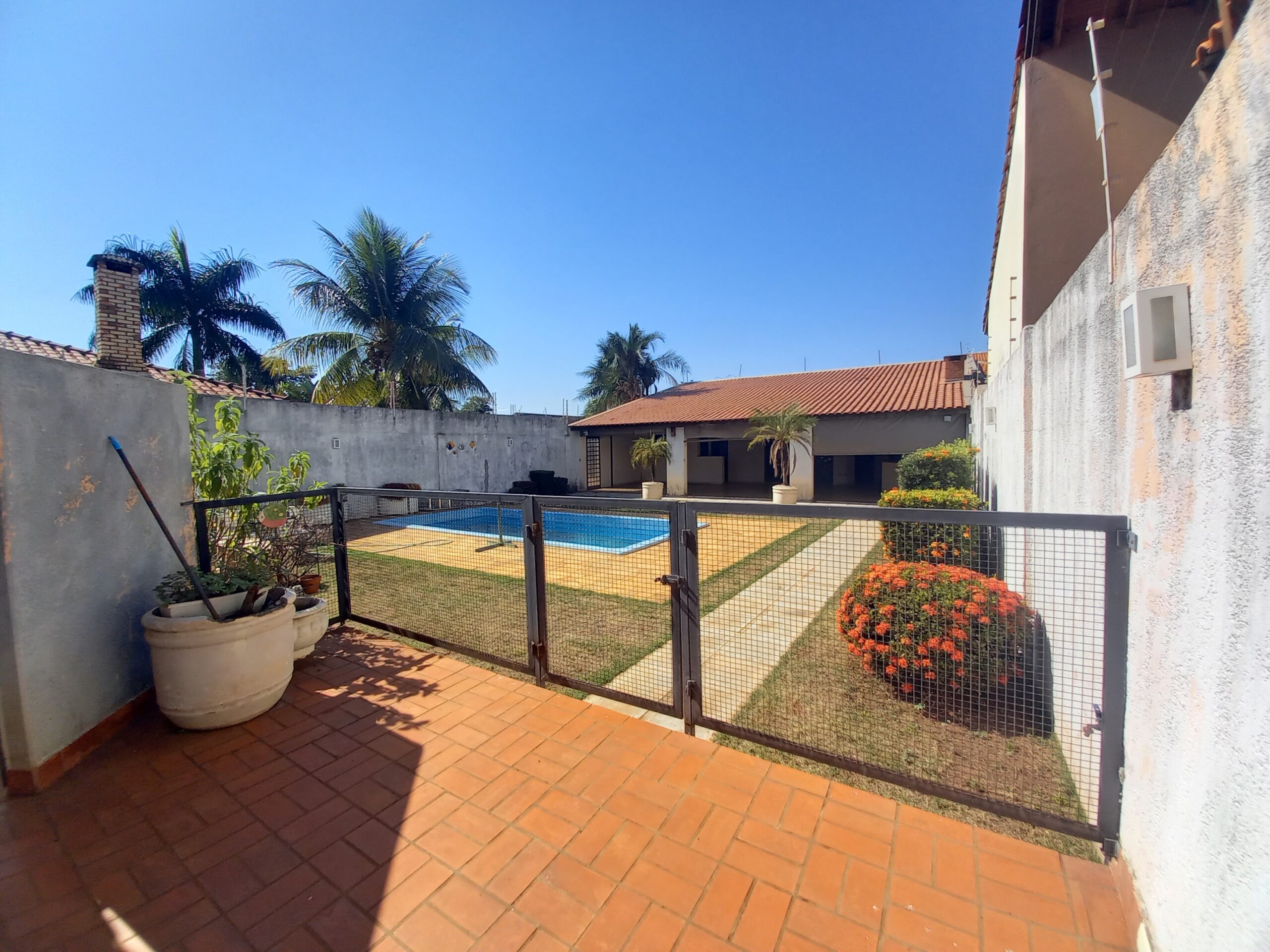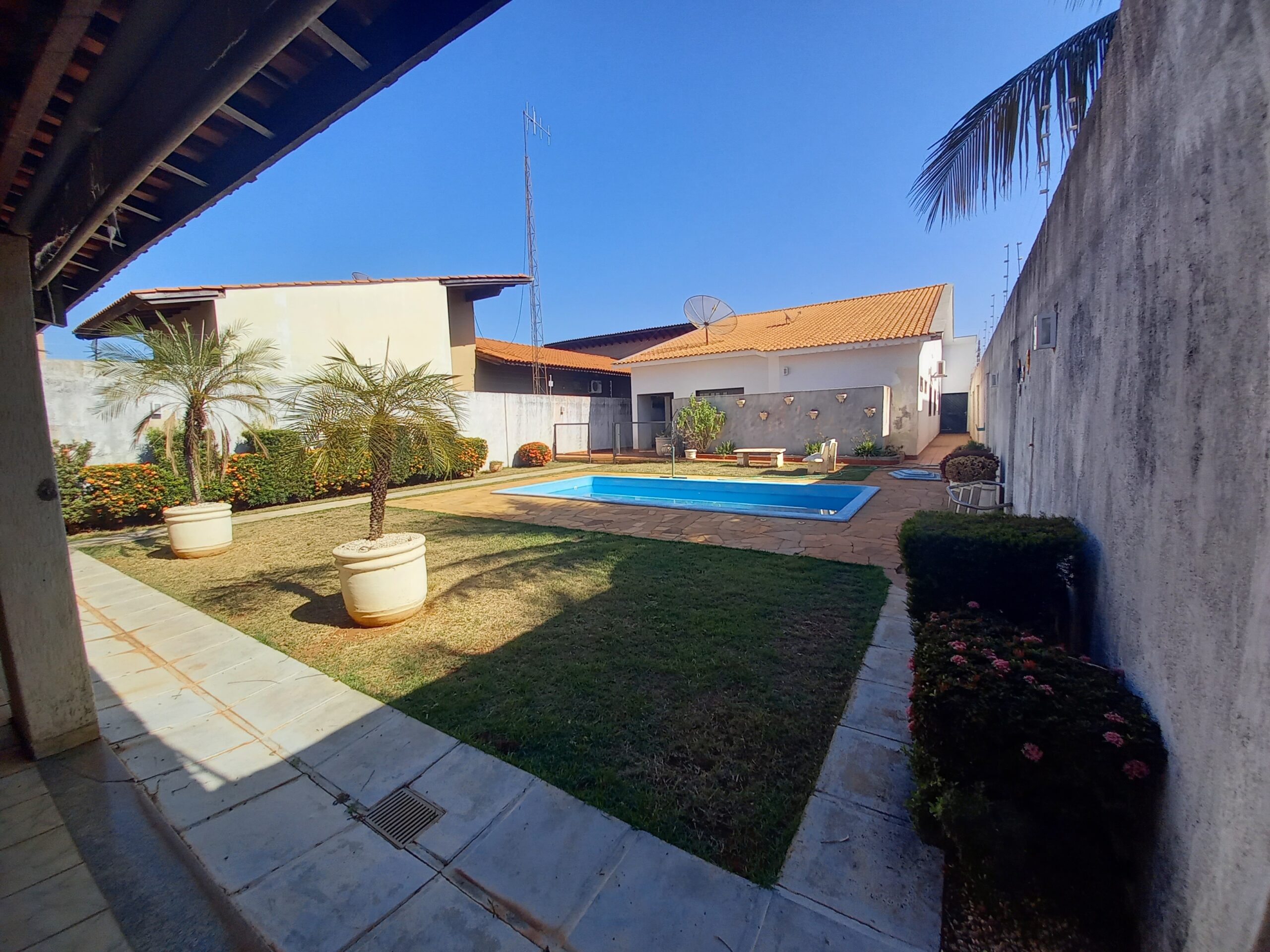 Casa: 01 suíte com closet, 02 quartos, 03 salas, cozinha com A/E, banheiro social, lavadeira coberta, dispensa externa, varanda nos fundos com churrasqueira, quintal, piscina, portão eletrônico cerca elétrica, teto de laje, piso de cerâmica, murada, no asfalto.