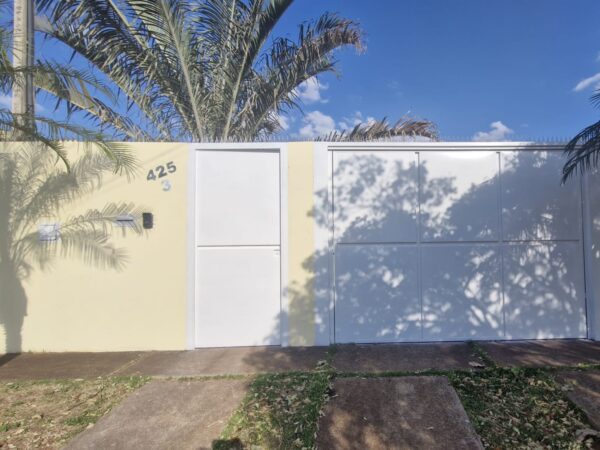 01 suíte, 01 quarto, sala, cozinha, banheiro social, lavanderia, jardim de inverno, portão eletrônico, garagem, interfone, teto de laje, piso de cerâmica, murado, no asfalto.